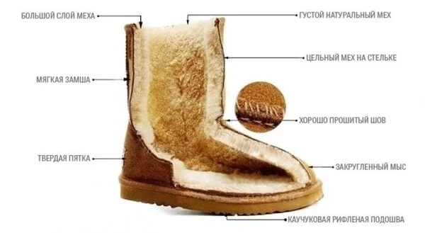 Особенность подошвы — использование материала EVA, широко применяемого в автомобильных ковриках, напольных покрытиях и спортивной обуви. Он отличается гибкостью, прочностью, водо- и морозостойкостью, что обеспечивает долговечность и надежность. Оригинальные угги всегда прошиты — клей в верхней части отсутствует.