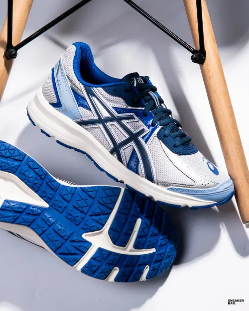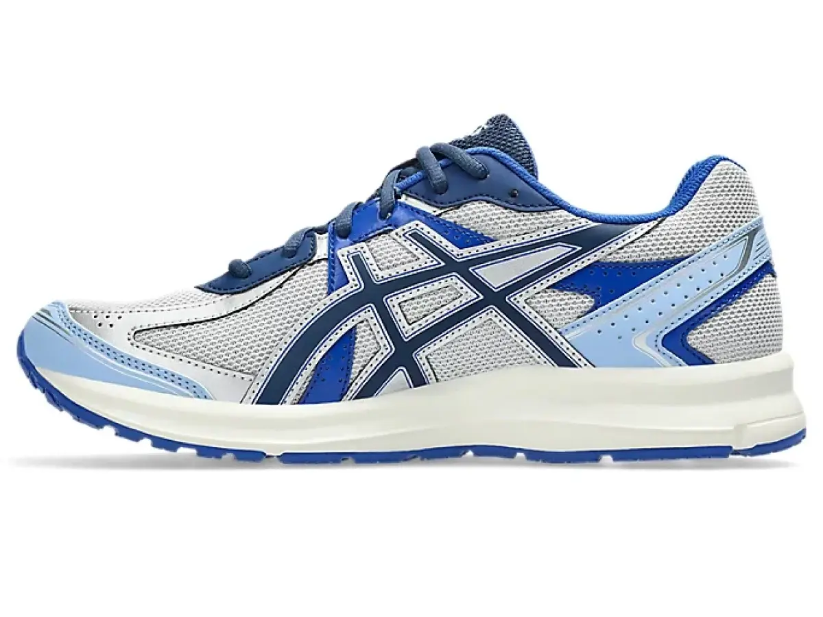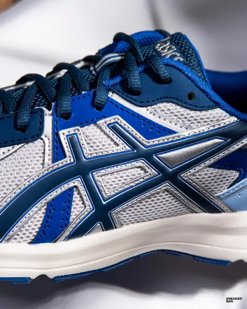 Цветовая гамма модели (1203A741-021) — это сдержанный и стильный микс. Основной серый цвет верхней части из комбинации синтетической кожи и текстиля отлично контрастирует с яркими синими акцентами подборки и чистой белой подошвой. Такой палитры достаточно, чтобы кроссовки Asics Jog 100s стали ключевым акцентом в любом casual-луке — от джинсов и худи до более свободных брюк. Низкий профиль и классический крой делают их невероятно универсальными и комфортными для носки целый день.
