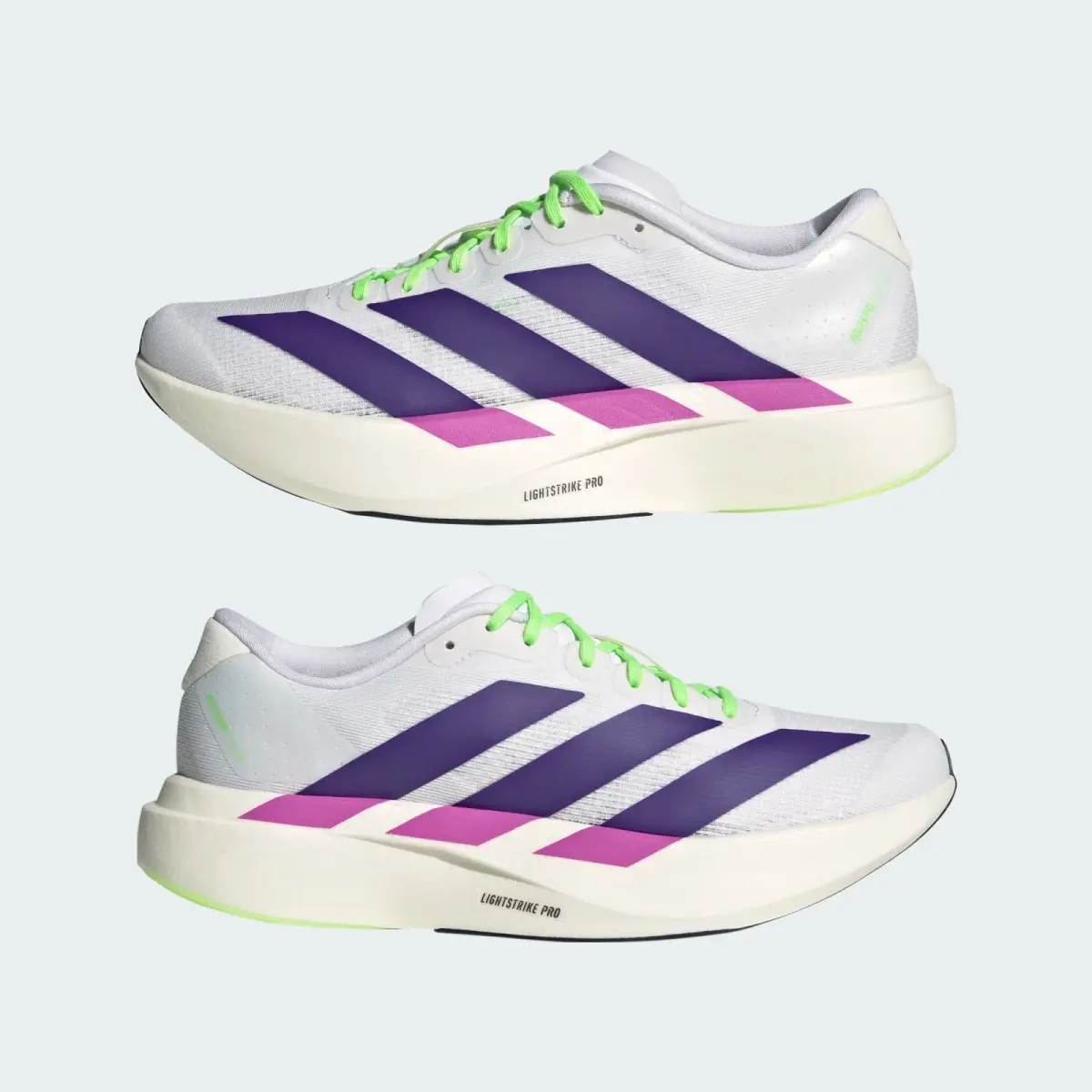 Ощути скорость с кроссовками Adizero Evo SL. Технологии из мира профессионального бега и дерзкий гоночный стиль Pro Evo 1 объединились в модели, которая одинаково круто смотрится на треке и в городе. Легкая и отзывчивая подошва с пеной LIGHTSTRIKE PRO дарит комфорт и максимальный возврат энергии, чтобы ты чувствовала темп - даже когда не бежишь.