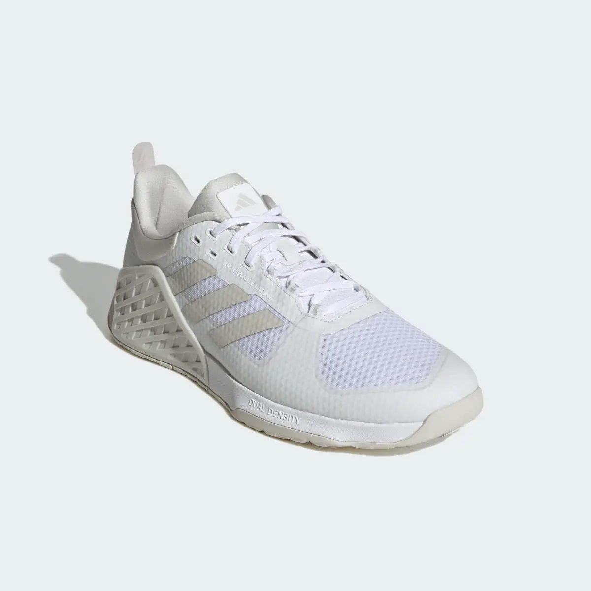 Ощущение грифа в руках, лязг дисков для штанги, звон колокольчика при персональном рекорде. Ничто не сравнится с отличным тренировочным днем, и эти кроссовки adidas гарантируют отличную результативность во время силовых тренировок. Перепад подошвы 6 мм образует ровную и устойчивую платформу и помогает найти правильное положение при выполнении всех упражнений. Промежуточная подошва двойной плотности дарит комфорт и контролируемую стабильность, а цепкая подошва Traxion надежно фиксирует стопу. Модель изготовлена с использованием ряда переработанных материалов и минимум на 70% состоит из вторичного сырья, представляя собой лишь одно из наших решений, призванных покончить с пластиковыми отходами.