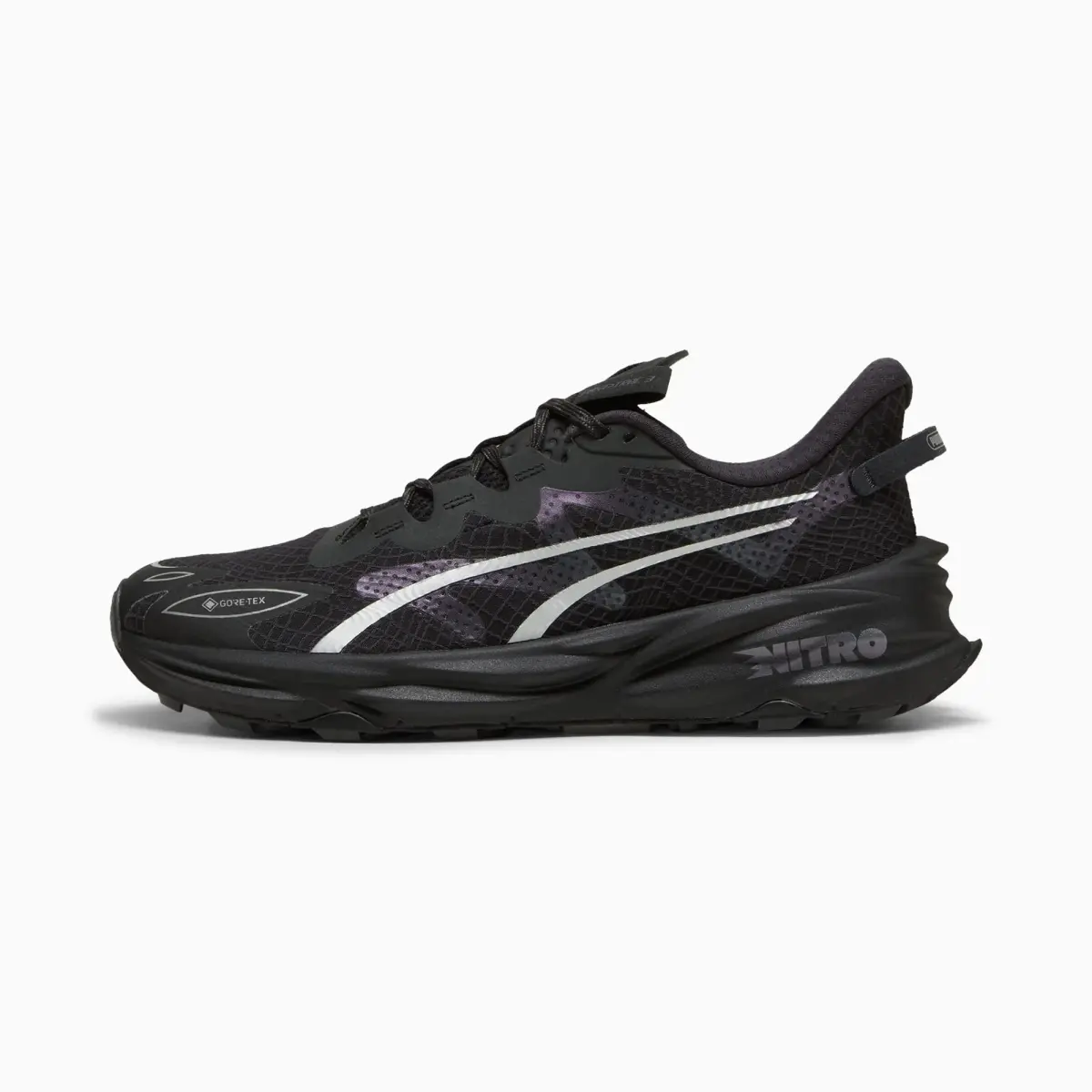 Представляем кроссовки PUMA Fast-Trac 3 на низкой подошве. Это ваш идеальный компаньон для трейлраннинга. Модель снабжена полноразмерной межподошвой NITROFOAM™, которая обеспечивает упругость и амортизацию. Выступы на подметке PUMAGRIP ATR толщиной 4 мм дают непревзойденное сцепление с дорогой. Гетра с валиком комфортно облегает голень. Это совсем новые впечатления от трейлраннинга. Верх снабжен невидимой мембраной GORE-TEX®. Это невесомая технология, которая обеспечивает сухость и комфорт ног в любых условиях. В кроссовках PUMA Fast-Trac NITRO™ 3 вы уверенно покорите любой ландшафт.