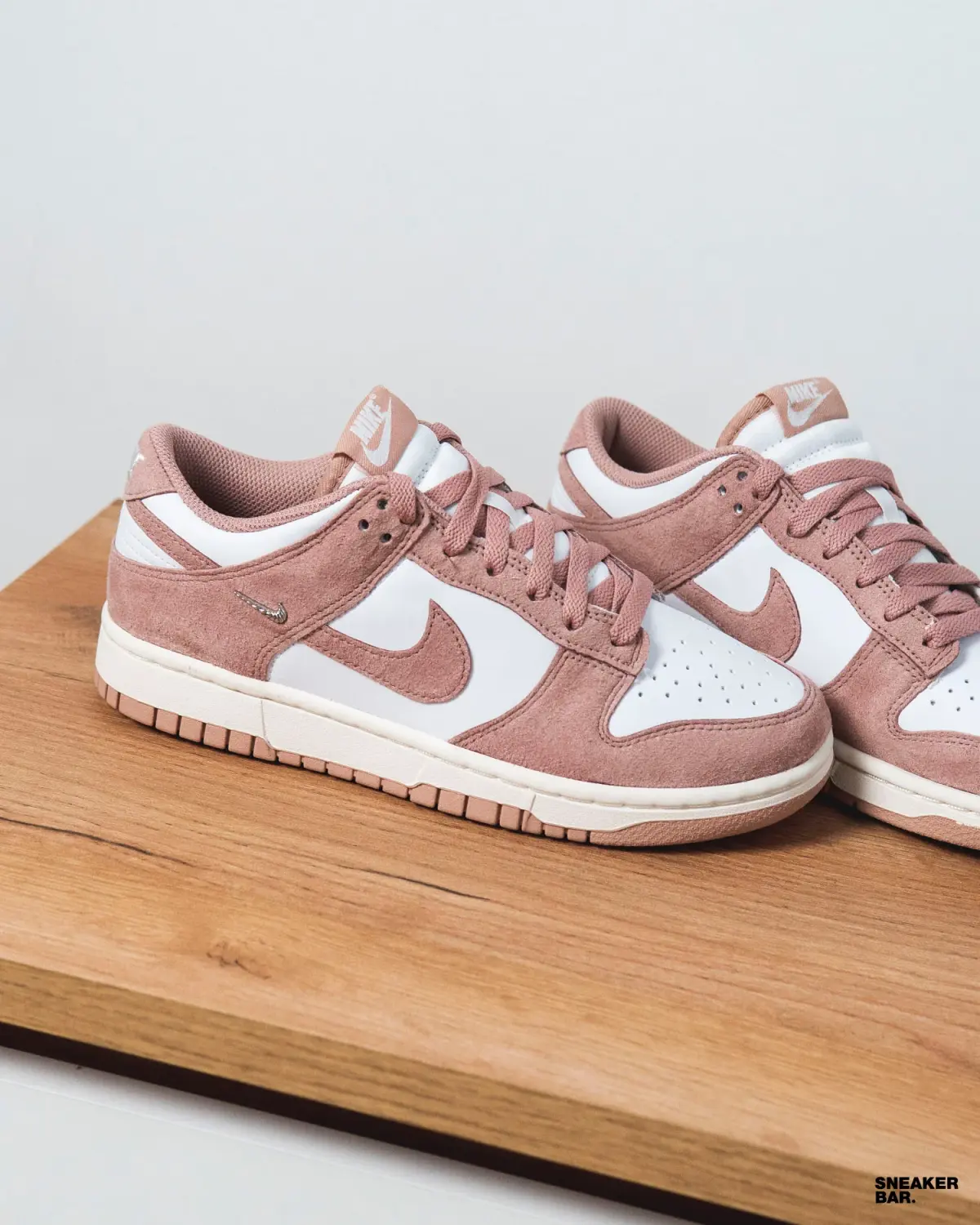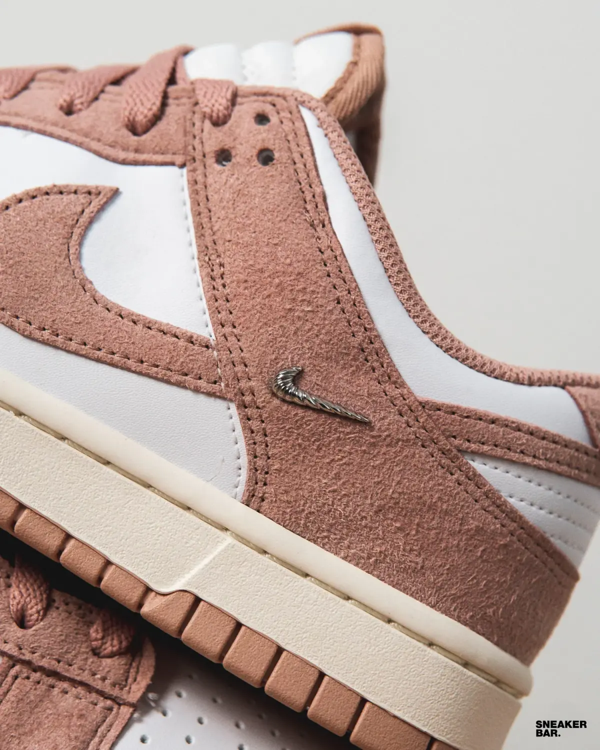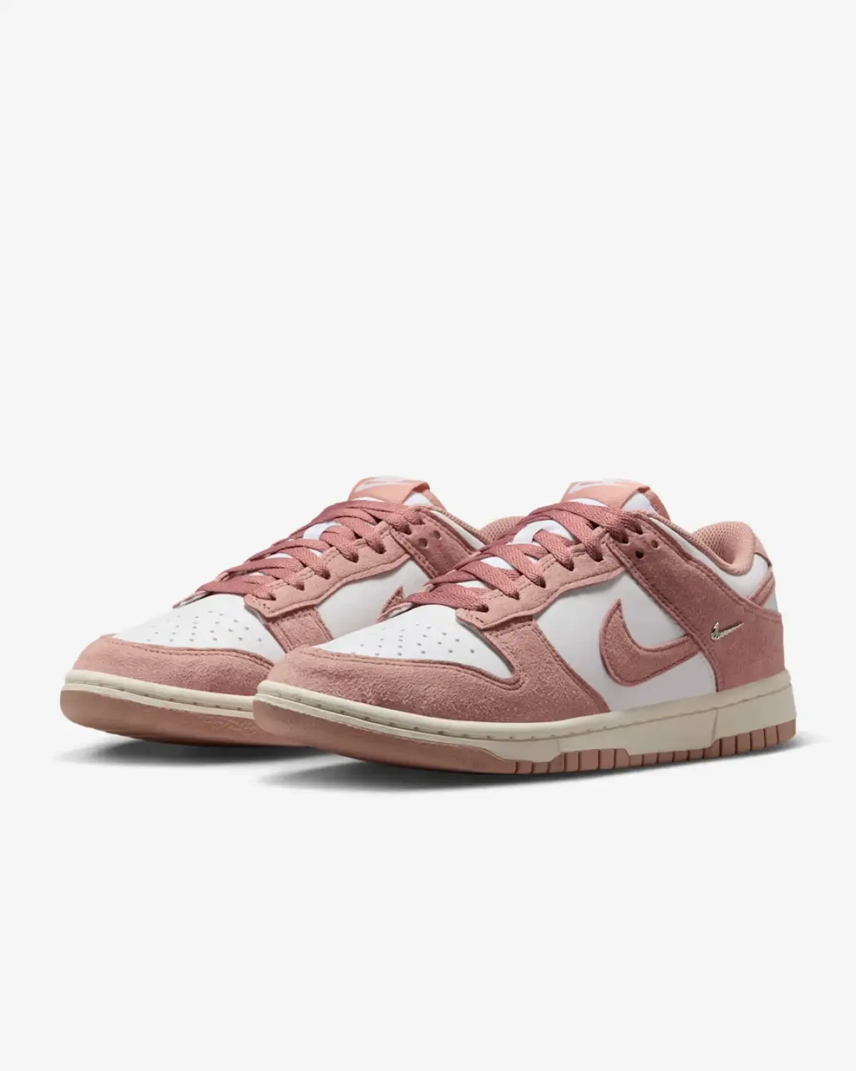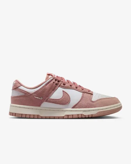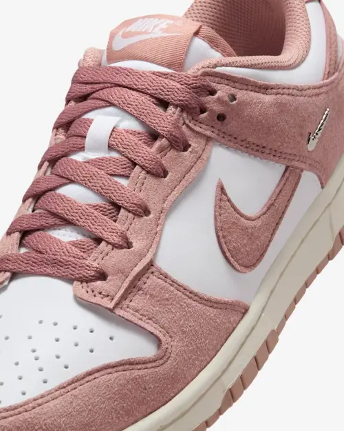 Эта женская пара выполнена в нежной, но уверенной палитре. Основной белый кожаный верх создает чистый холст, который эффектно контрастирует с насыщенным розовым замшевым оверлеем на мыске, пятке и воротнике. Изюминкой дизайна становится подошва: ее бежевый оттенок с розовыми деталями добавляет винтажный шарм и делает эту модель невероятно универсальной. Низкий профиль и классический силуэт кроссовок Dunk гарантируют комфорт в течение всего дня.