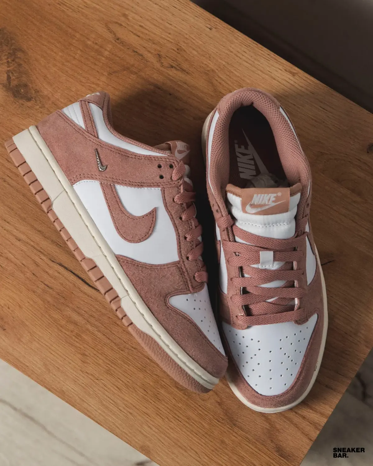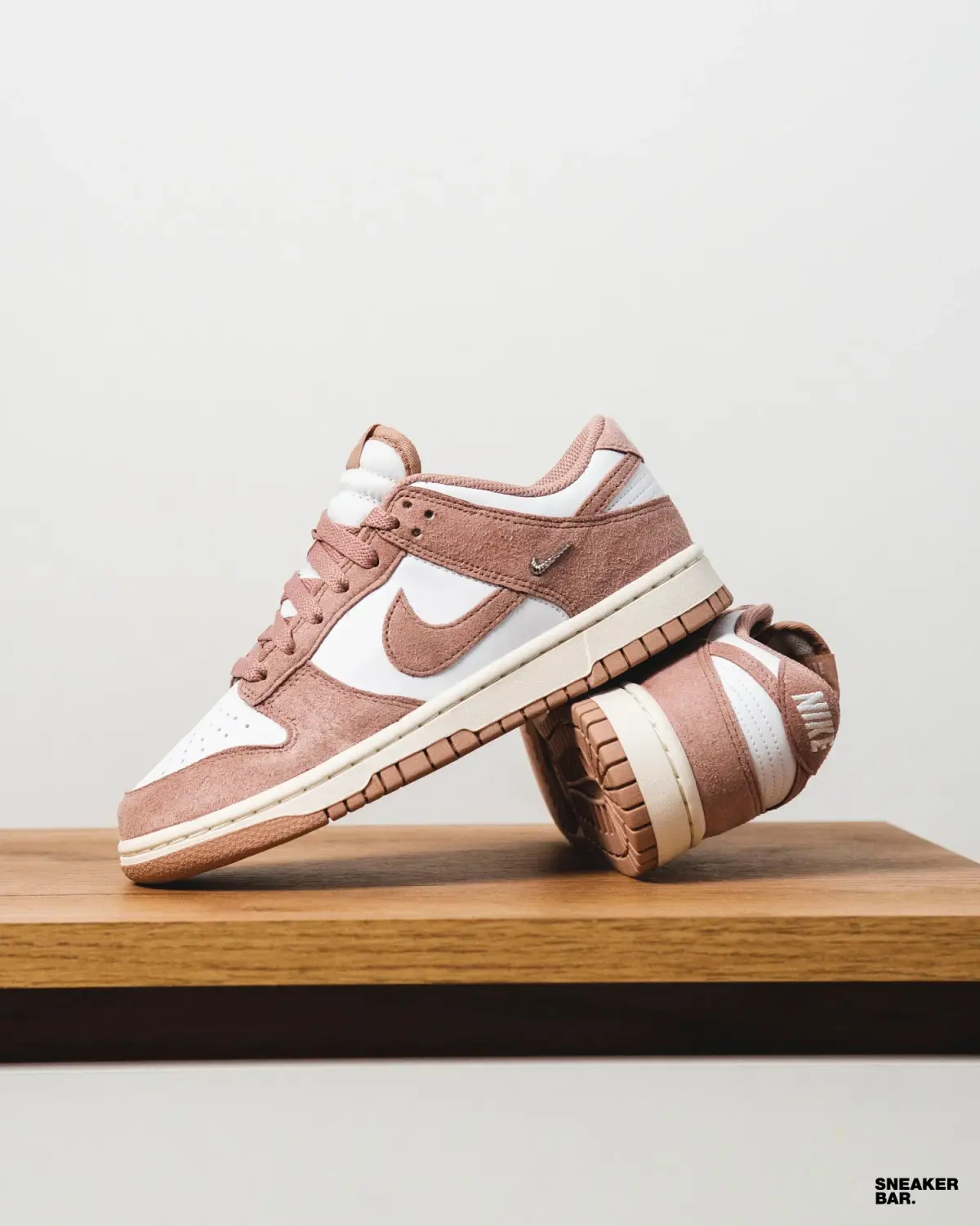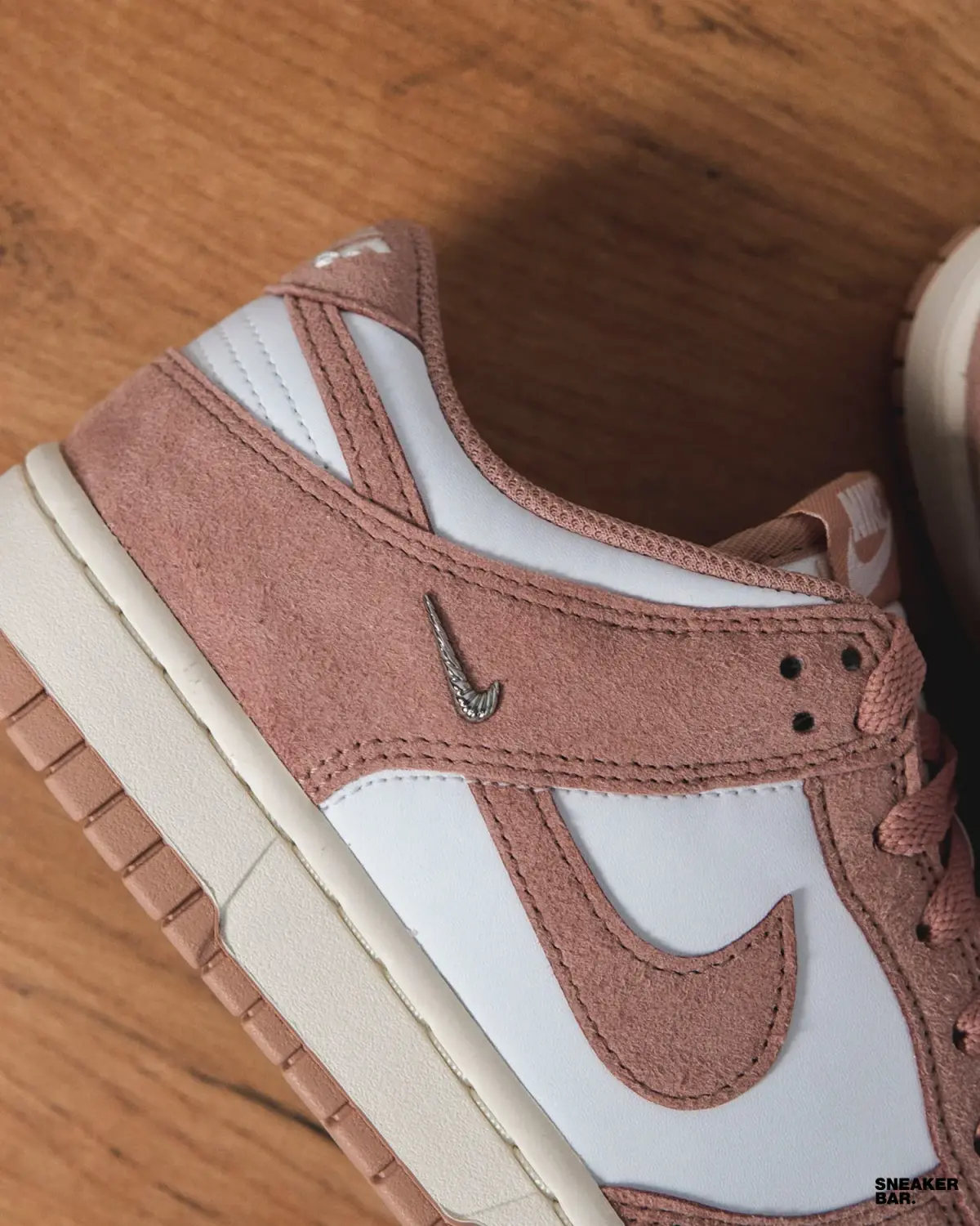 Эта женская пара выполнена в нежной, но уверенной палитре. Основной белый кожаный верх создает чистый холст, который эффектно контрастирует с насыщенным розовым замшевым оверлеем на мыске, пятке и воротнике. Изюминкой дизайна становится подошва: ее бежевый оттенок с розовыми деталями добавляет винтажный шарм и делает эту модель невероятно универсальной. Низкий профиль и классический силуэт кроссовок Dunk гарантируют комфорт в течение всего дня.