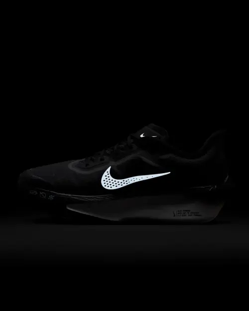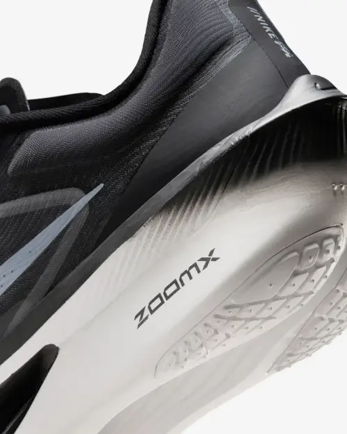 Сердце этой модели — инновационная технологичная подошва. Пеноматериал Nike ZoomX, известный по профессиональным гоночным моделям, обеспечивает невероятную энергоотдачу и легкость с каждым шагом. Углеродная пластина Nike Air Zoom, интегрированная в среднюю часть, создает эффект «катапульты», способствуя более эффективному перекату и стабильности. Верх из легкого дышащего текстиля в черно-серой гамме с белой подошвой обеспечивает идеальную посадку по ноге и отвод влаги, делая каждую пробежку комфортной независимо от дистанции.