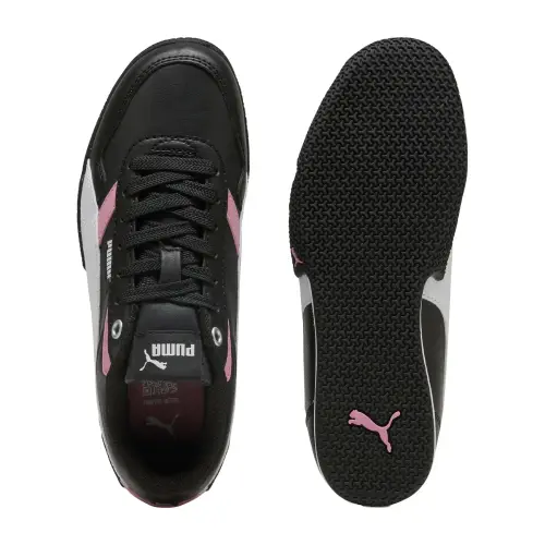 Черно-белая цветовая гамма делает эту модель универсальным выбором для любого образа. Синтетическая кожа обеспечивает долговечность и легкий уход, сохраняя безупречный вид даже при активной носке. Низкий профиль и белая подошва подчеркивают изящный силуэт, а классические детали вроде фирменной полоски Puma добавляют узнаваемости. Эти кроссовки — must-have для тех, кто ценит сдержанность и стиль.