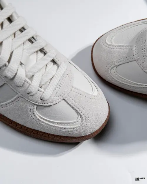 Эти низкие кеды выполнены из качественной замши серого оттенка с контрастными розовыми акцентами. Коричневая подошва добавляет ретро-эстетики, делая модель идеальной для повседневного стиля. Замша не только выглядит премиально, но и обеспечивает долговечность носки. Модель относится к коллекции AW25, что подчеркивает ее актуальность в текущих трендах уличной моды.