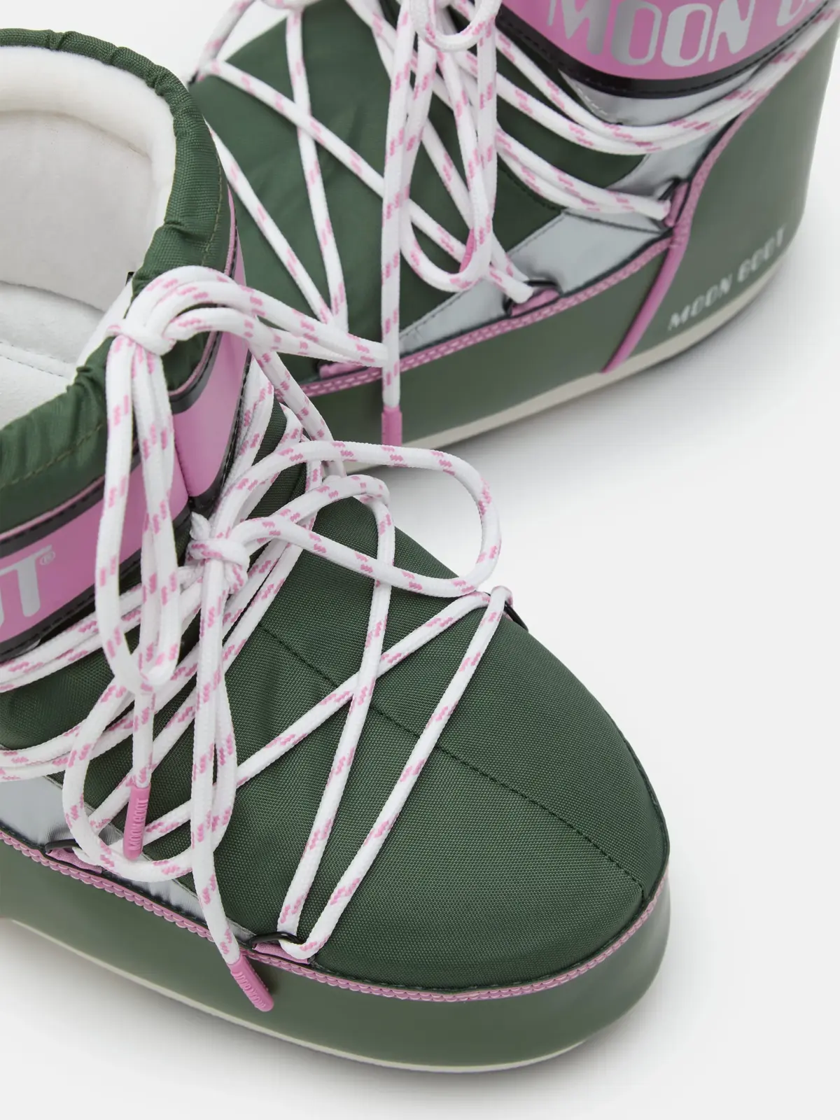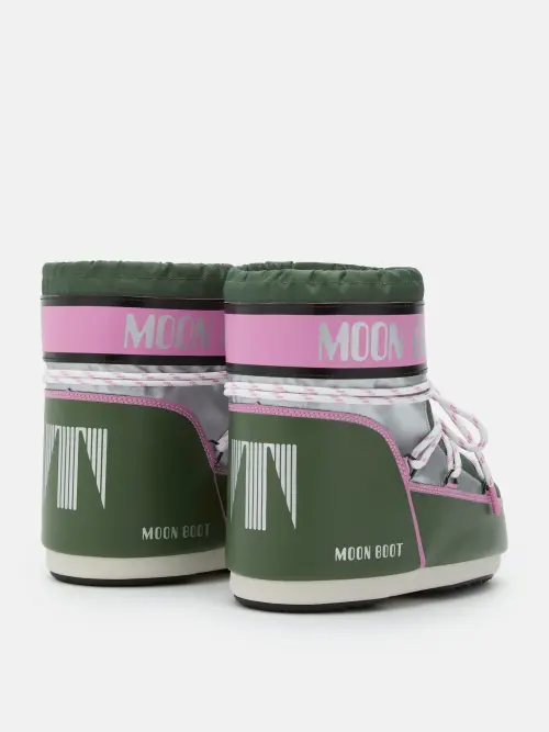 Эти высокие ботинки моментально приковывают взгляд своим смелым цветовым решением. Сочетание насыщенного зеленого верха с контрастной розовой подкладкой и деталями создает дерзкий, энергичный образ. Серый цвет подошвы добавляет композиции технологичности и устойчивости. Конструкция обуви продумана для комфорта в любую погоду: верх из прочных материалов надежно защищает от непогоды, а технологичная подошва гарантирует амортизацию и сцепление с поверхностью. Долговечность — ключевой принцип Moon Boot, и эта пара создана, чтобы оставаться с вами сезоны напролет.