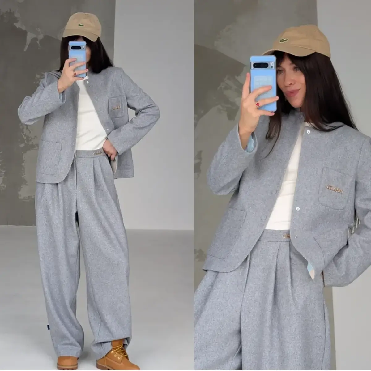 Серый цвет этих брюк — не просто базовый оттенок, а сложный микс тонов, напоминающий природные текстуры. Такой подбор цвета делает модель невероятно универсальной. Их легко комбинировать с объемными кроссовками, кедами, худи или строгой рубашкой, создавая как расслабленный casual-образ, так и более собранный лук. Прямой крой и качественный текстиль подчеркивают силуэт, делая его одновременно модным и комфортным.
