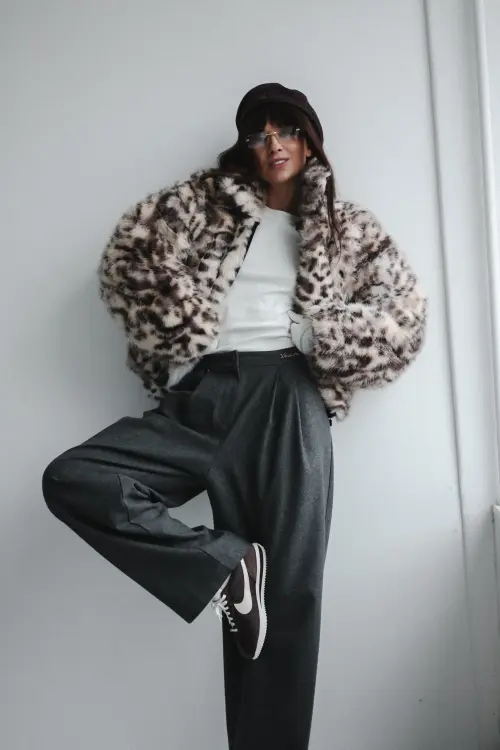 Бренд TASSHA YU давно зарекомендовал себя как создатель смелых городских силуэтов где каждая деталь продумана для динамичной жизни Модель Wooly Boss Pants Grafit Melange из коллекции AW25 это воплощение современного уличного стиля с отсылкой к винтажному крою брюк-клеш История этой модели началась с архивных образцов 90-х которые дизайнеры бренда переосмыслили добавив технологичные материалы и актуальный крой для создания идеального баланса между ретро-эстетикой и современным комфортом
